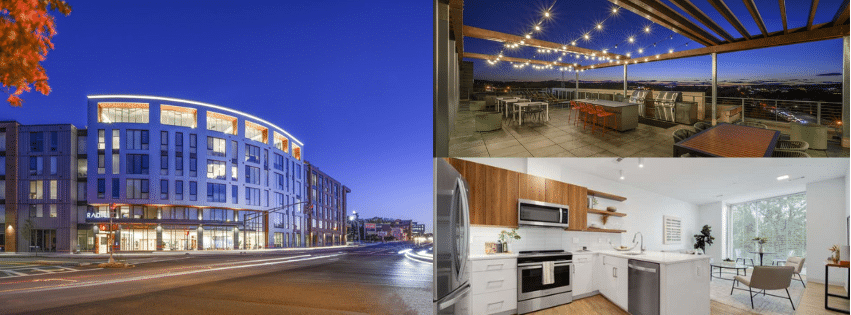Radius Apartments is home to 132 luxury apartment residences, offering a variety of studio, one-, and two-bedroom floor plans designed for modern urban living. Each home features quartz countertops, stainless-steel appliances, wood-grain flooring, keyless entry, LED lighting, and in-home washers and dryers. The community is also LEED Gold Certified by the U.S. Green Building Council, incorporating high-efficiency water fixtures and ventilation systems that promote a sustainable, environmentally friendly lifestyle.